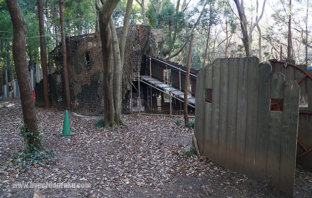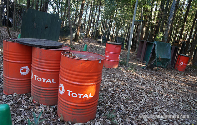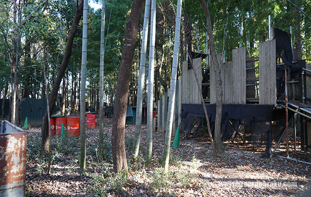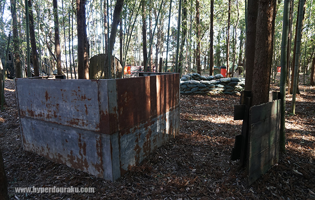 いたるところに板、丸太、すだれ、トタン、コードリール、トーチカ小屋など、人工的な障害物が巧みに設置してあり、ゲームを面白くしている。