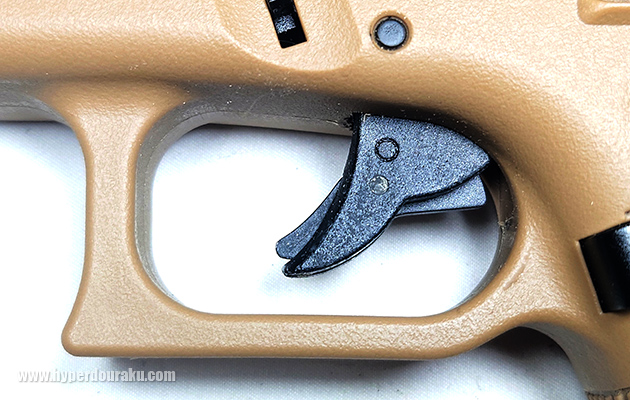 トリガーはこんな感じ。グロックお馴染みのトリガーセーフティはしっかり再現されています。
