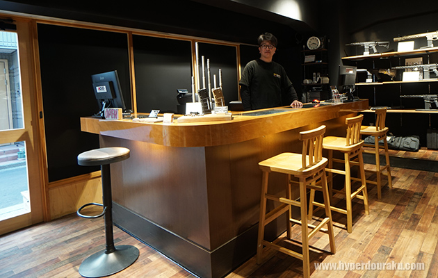 島岡店長がお出迎え。常連さんにはおなじみのカウンターも移設されていた。
