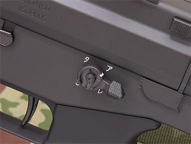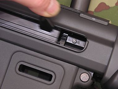 右側側面。独自のセレクターレバーが右側にある。これが操作性にどのように影響するか、気になるところ。また、M16系のセレクターと比べると切り替えが重い。幾度となく操作していると若干軽くなってきた。