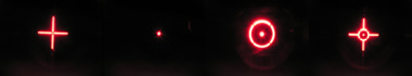 ![]() 重量は176gでコンバット45より107gも重いが、チューブダットの代表格エイムポイントCOMP ML2の217gよりは軽い。コンプはさらにマウントリングが必要だが、BED-24はピカニティレール用のマウントも本体下部についている。 ダットは、クロスゲージ、ダット、サークルインダット、サークルクロスの4種類の形状を切り替えられる。 |