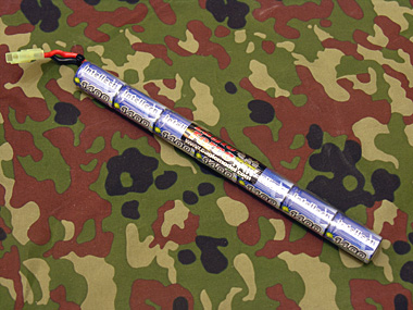 Intellect 1400ニッケル水素AKバッテリー (\2,340/エアボーン新宿/2006.10.08)先日のマルイのインドア戦で最終ゲーム中盤、フル充電しておいたGP1100がバッテリー切れしてしまった。6ゲームくらいやって、どのゲームも1マガジン撃ちきらなかったので、1ゲームあたり250発平均としても1500発。セミオート戦が半分なので電力消費は多いほうだったろう。