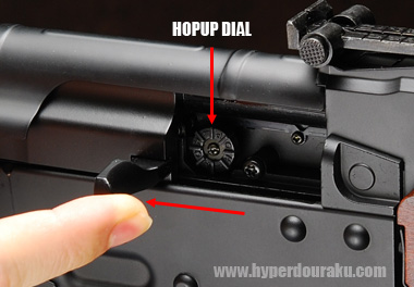 ボルトハンドルを引くとホップアップ調節ダイアルにアクセスできるのもAK74MNシリーズ同様。