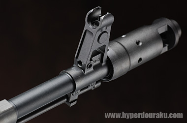 フロントサイトポストの形状もAK74MNに順ずる。フロントサイトピンは付属のアジャストツールで上下に調節可能。