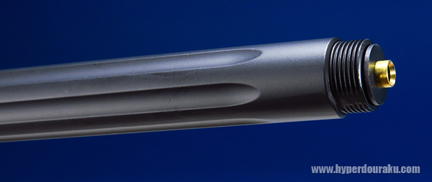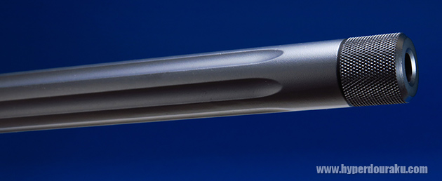 アウターバレルはアルミ製でフルート入りです。マズルキャップは20mm正ネジで着脱可能で、メーカー純正で発売される各種ハイダーやマズルブレーキが装着できます。