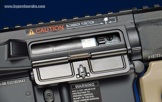 またHERA ARMS CQRはボルトカバーが可動するEBBです。射撃時にボルトが動いているかのようなアクションが楽しめます。ただしリコイルはありません。