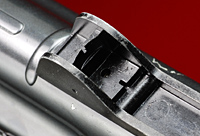 後部のレシーバートップキャッチボタンを押すとレシーバーカバーが上方に取り外せる。
