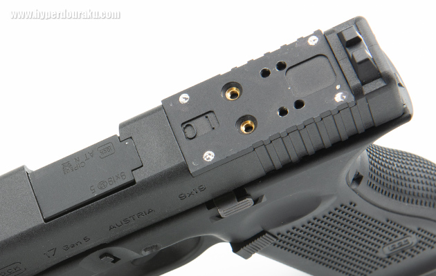 スライド上部のカバーを外し、搭載するマイクロドットサイトに合ったプレートを取り付ける。
