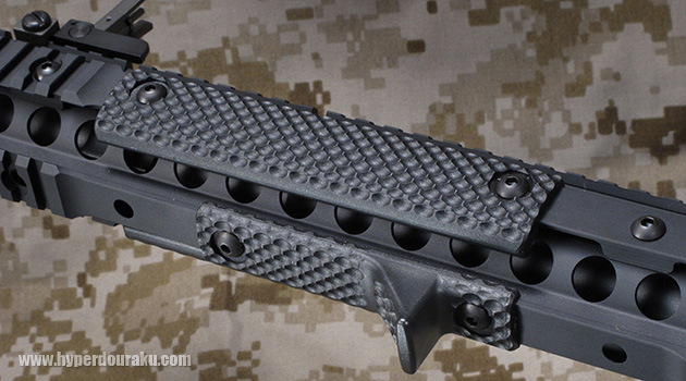 レイルハンドガードは細く、軽量にして、必要な箇所のみ任意にレイルを装着するのが現在の主流です。