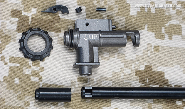 目視した限り、ハイダーやアウターバレルのズレや歪みはなく、弾道の乱れはメカボックスと言うよりは、チェンバー周りにあると判断しました。そこで後日分解してチェンバーをチェックしてみました。