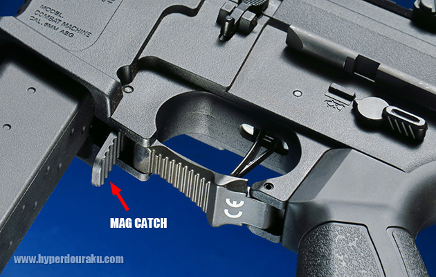 マガジンキャッチはMP5のようなレーバー式に変更されています。トリガーガードもスリット入りのワイドタイプが採用されています。