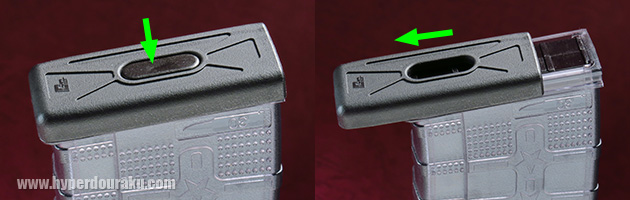マガジンバンパーの中心部を押せば、バンパーが外せ、マガジン外側のスリーブが外せます。