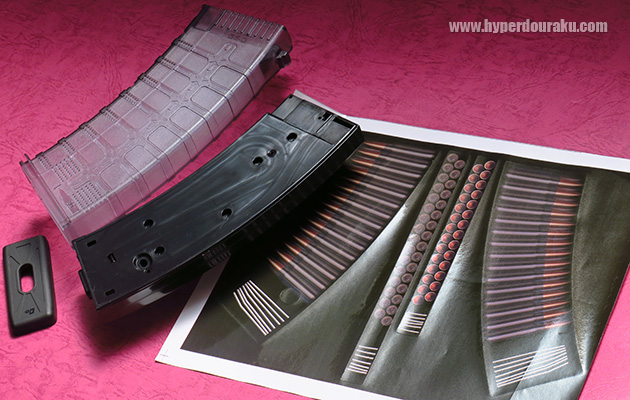 マガジンの本体の方へ付属の弾丸シールを貼れば、まるで実弾が装填されたようなシースルーマガジンになります。