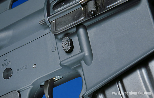 フレーム右側のフォワードアシストボタンと誤操作を防ぐためにマガジンキャッチ周りのリブがA1から追加されました。