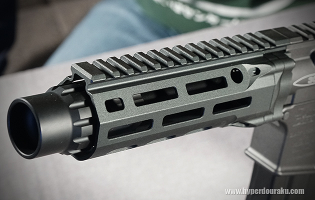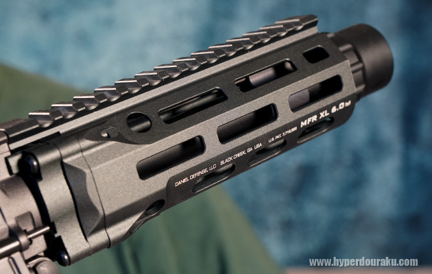 ハンドガードはM-LOK対応のアルミ製で、MFR 6.0インチを再現している。