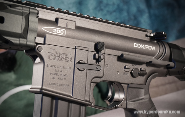 レシーバーには300ブラックアウト弾やDDM4 PDWのレーザーマーキングのほか、正式ライセンスによるDaniel Defenseの刻印が入り、雰囲気が良い。