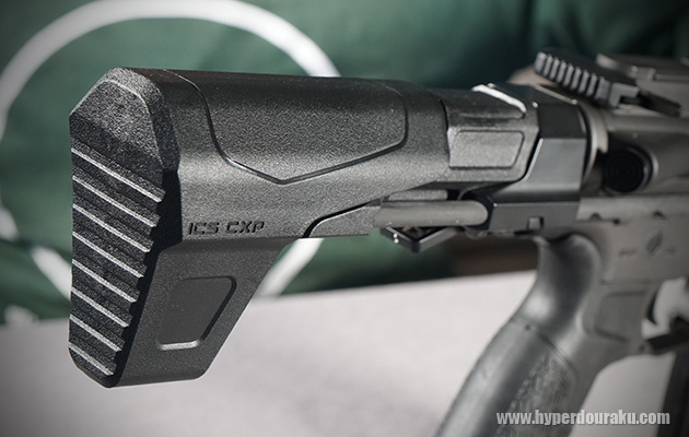 ストックは樹脂製のICS CXPストックで伸縮は三段階。