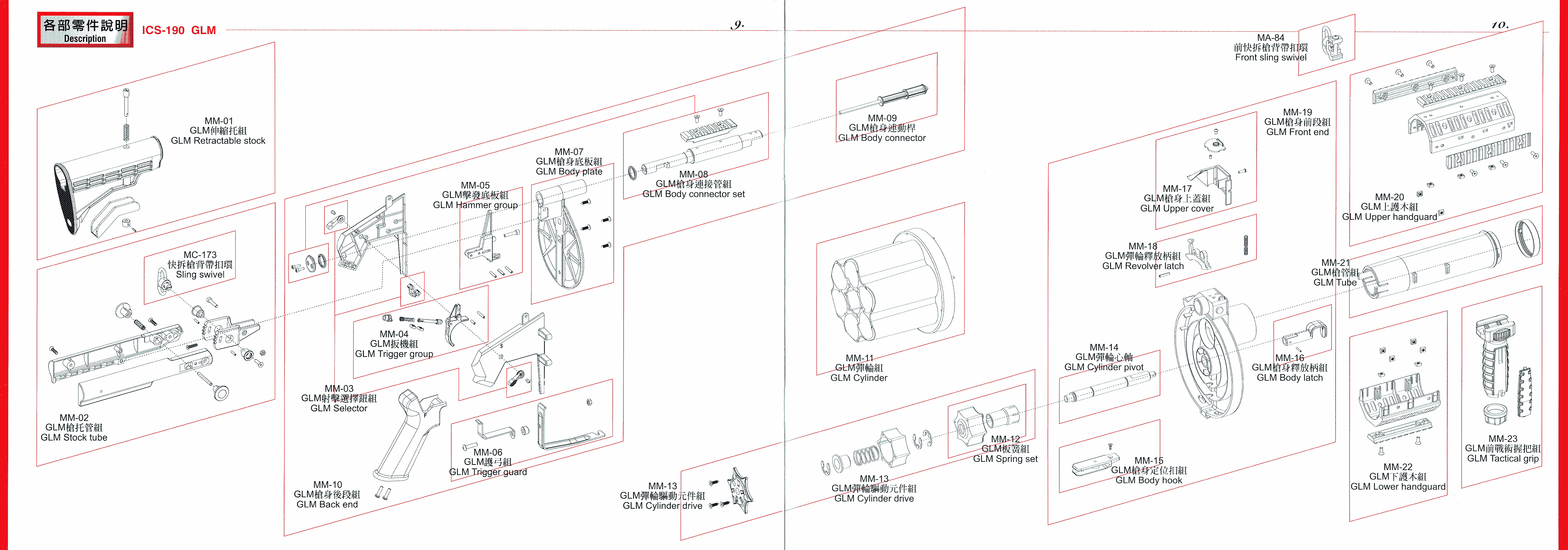 今回レビューするのは台湾ICS社製のグレネードランチャー、ICS-190 GLMだ。このグレネードランチャーのエアガンは直径40mmのグレネードカートリッジを使用する。カートリッジに複数の6mmBB弾を詰め、カート内にガスをチャージして弾を発射する仕組みになっている。
