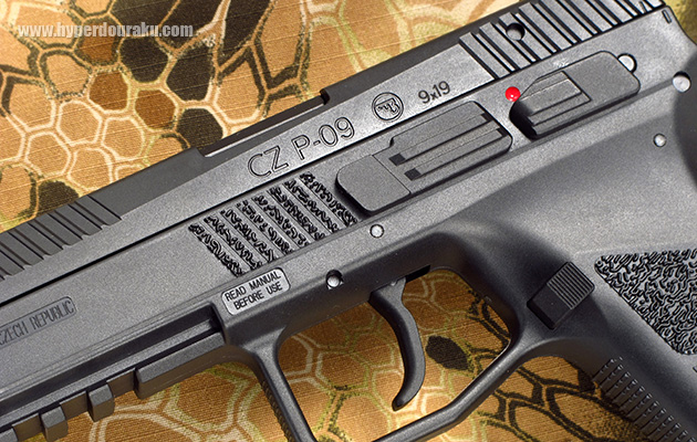 最近はハンマー内蔵のストライカー方式のすっきりしたデザインが増えてきたので、P-09は逆に新鮮にみえます。コック&ロックが可能で、ビーバーテイルを装備したリア部の佇まいは、ガバ系を彷彿とさせ、まさにプロ用のツールという雰囲気が漂ってきます。