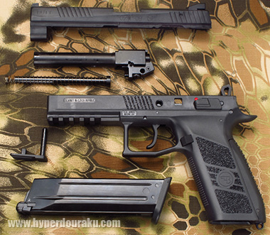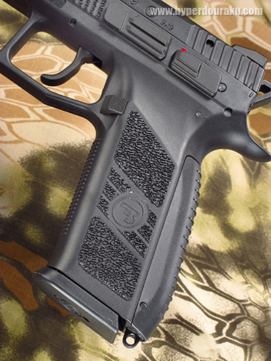 ポリマーフレームを採用し、HKやXDのような現用ハンドガンにみられるゴツゴツ感がありつつも、薄いスライド、グリップ形状とCZらしい特徴がみられます。