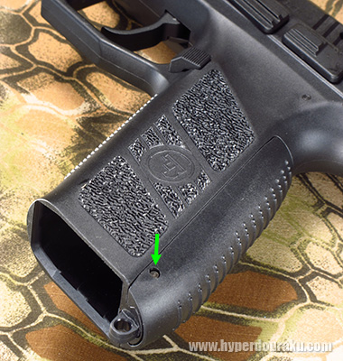 ハンマースプリングの交換は、グリップパネル下にあるピンを抜きます。