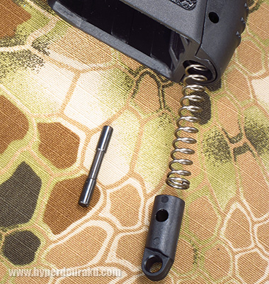 ピンを抜けばランヤードリングとハンマースプリングが取り出せます。外すときにスプリングを飛ばさないように注意してください。