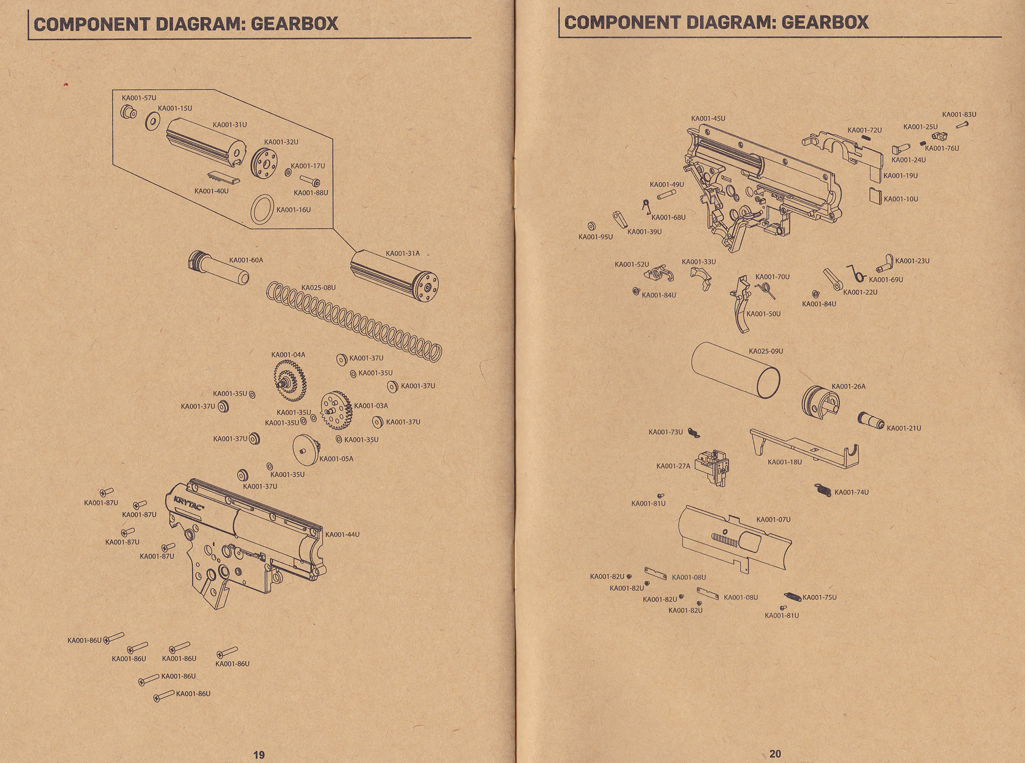 中は型抜きしたスポンジに本体やマガジンが収められています。取説に正規代理店による弾速証明書、KRYTACのステッカー、英語表記の注意書きが同封されています。他に全長75mmの専用ピカティニーレール1個付属(別途3/32インチ六角レンチが必要)、多弾倉マガジン用の六角レンチが標準装備です。