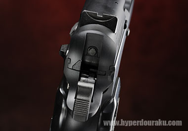 システム7化により、中心線とガス放出口をずらした大口径シリンダーをコンパクトなスライドに内蔵し、従来モデルに比べ、迫力のブローバックリコイルが安定して味わえる。