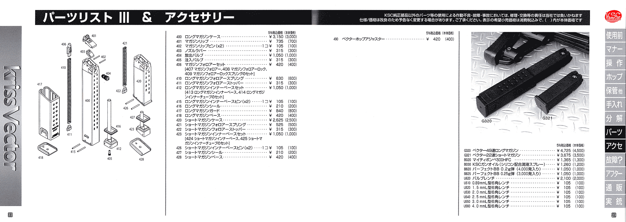 ちなみに実銃のクリスベクターのマガジンはグロック21と共用できるので、KSCもガスブロのグロック21を発売する予定があるのかもしれない。メインウエポンとセカンダリのマガジンが共有できるというのは何かと便利だろう。