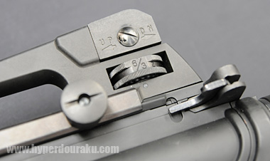 フロントサイトポストも亜鉛ダイキャスト製。フロントサイトピンはスチール削りだしの角型断面タイプでサイトピクチャがシャープで良い。