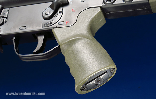 グリップは樹脂製です。サムレスト付きで、一応フィンガーチャンネルもあります。