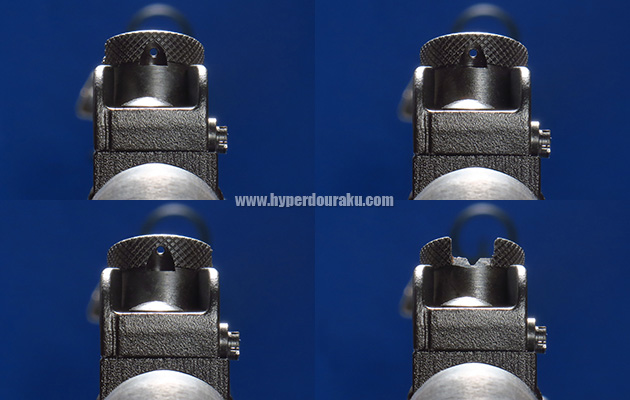 HKといえば、このドラム式のリアサイトでしょう。もちろん回転し、4種から選択できます。