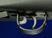 M14系の安全装置はトリガーガード前方にある。下の写真のようにレバーをトリガーガード内にスライドさせればセフティが働く。