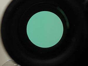 ![]() 実物レンズはほとんど着色がない。 乱反射もない。 |