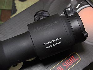 ![]() レプリカコンプの青暗さが気になったので、本家、というか実物AIMPOINTを購入。デイゲームでの使用が目的なので、ナイトビジョンモードのないML2を購入。 |