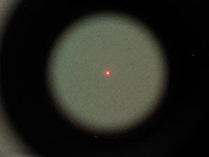 ![]() フォーカスを∞に合わせて撮影。しっとりと、ぽつりと光るダット。肉眼ではにじみは感じられない。最大輝度にするとギラッと光るのは仕方ない。 クリックは全部で9段階。室内の蛍光灯下だと、3クリックからわずかに点灯したことが判別できる。室内だと5クリック目で普通のドットの明るさ。ピーカンの屋外だと8クリックくらいまで上げる。最後の9クリックはちょっとギラッとするが、砂漠などの炎天下では良いかも。 |