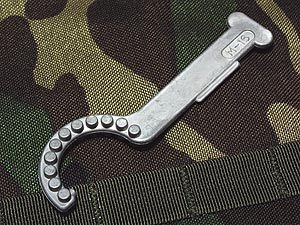 ![]() バレルレンチ。MGC上野店でモデルガン用が200円。バレルナットをプライヤーで締め込むと傷が付くので、これは必須工具。 |