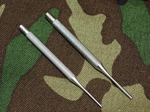![]() ピンポンチ。フロントサイトピンを抜くのに使用。その他いろいろ使い道は多い。 |