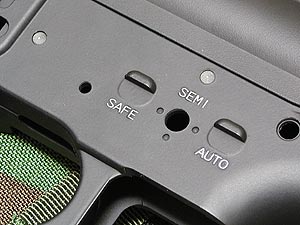 ![]() セレクター表記もシルクプリント。G&Gの特徴が、フルオートシアピンとハンマーピンが埋め込み式の別パーツであること。これは良い。 |