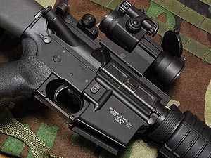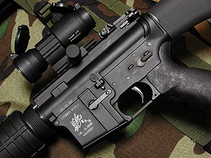 ■M4A1メカボックスの内部チューン 2丁目のM4A1をカスタム中だが、今回は固定ストック化はせずに、ミニバッテリーを使用してコンパクトに仕上げるコトにした。それに伴って、今回の内部チューンのテーマは「箱出しノーマルと同等のパワーで低燃費を狙う」だ。0.8Jをキープしつつ、8.4Vミニバッテリーでも十分安定した回転数と発射可能弾数を稼ぐというコンセプトだ。ノーマル戦で不利なく戦えて、ミニバッテリーで1日楽しめるM4を目指す。 ←外観はシステマアルマイト化フレーム、CAW RIS、PDIのBHDアウター、マルイサイレンサー、ライラクスの6ポジストック、AIMPOINT COMP ML2、アングスAN/PEQ-2バッテリーケースでミニバッテリー駆動。ハンドガードとストックはサンドカーキに塗装してみた。コマンドバレルとサイレンサー以外はオーソドックスな湾岸スタイル。 |