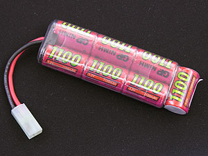 ![]() バッテリーはGP110AFHRセルを使用するGP1100NiMHをチョイス。ミニバッテリーサイズの1100mAhニッケル水素バッテリー。ニッケル水素なので1Aでの充電で約1時間。性能はなかなか良く、ノーマルで3000発は撃てるとのこと。エチゴヤで3360円で購入したが、スーパーガンで2860円程度で同じイーグル模型のものが入手できる。 |
