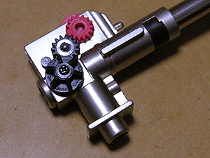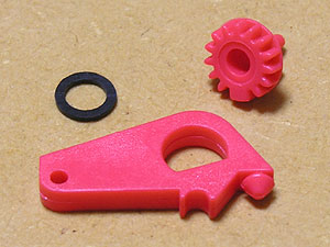 ![]() ストライクチャンバーは純正よりもホップの可変幅が広がる。また、ゴムのリングをギアとチャンバー間に噛ませるので微妙な位置でのホップ固定が可能になる。 |