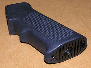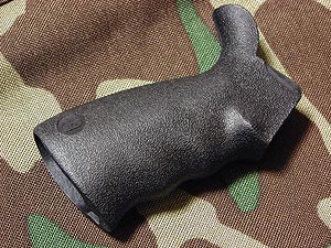![]() 色はG&Gに比べ濃いグレー。なんと言っても良いのが質感。写真では解らないが、表面がかなりザラついていて、実物に近い雰囲気。重量は313g。固定はショートタイプのボルト1本だが、G&Gよりはガッチリ固定出来るが、あまり締め込むと内部の補強部分が割れそう。市販のワッシャーを噛ました方が良いかも。 |