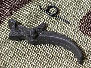 カスタムパーツの中には相性が悪いモノもある。これもそのひとつ。このトリガーを組み込むとセミオート、フルオート共にスイッチとの噛み合い時に滑り撃てなくなる。スイッチアッセンブリーはシステマを使用している。スイッチの素材が純正と違うので滑るのか、スチールにコーティングされたパーカーか、グリスのせいか、とにかく組み直してもうまくスイッチが作動しない。結局ノーマルトリガーに戻してみるとうまく動くのでこのトリガーはお蔵入り決定。少なくとも自分のメカボには合わないパーツ。G&Gのトリガーでも試してみようか。動作に関係するパーツは極力ノーマルが良い。過去相性が悪かったパーツは他にシステマのノイズレスグリップエンドなど。 |