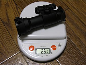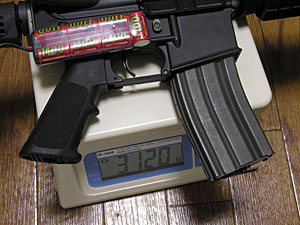 ![]() 結果的に本体+4倍スコープ+ミニバッテリー+マガジンフル装弾の状態で3kgを切り2960g。 |