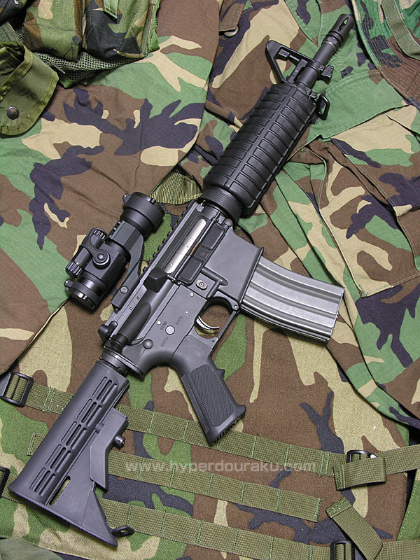 ![]() COLT社のページに載っているM4コマンド。11.5インチバレルでハンドガードがやや細身。ストックは強化タクティカルタイプ。これと比べるとG&PのM733フロントキットはバレルがちょっと短く感じる。11インチくらいか。 |