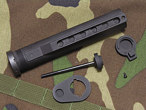 ■GUARDER M4ストックチューブ(ウィリーピート/\3,800)![]() 軽量化のために購入したが、無加工ではマルイ純正パーツと互換性がなく、使用できないパーツだった。 重量は156gと最軽量。マルイに対して178gも軽量化できるのだが...。 |