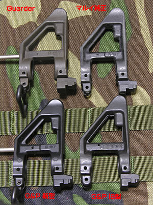 G&G スチールセレクターレバー(\1,512/スーパーガン)![]() またしても使えないパーツを買ってしまった。G&Gのマガジンキャッチが良かったので、セレクターも買ったのだが、質感はとても良いが、G&Pのアルミフレーム側の穴に対して、わずかにキツい。フレームの穴が6.0mmでG&Gのセレクターが6.1mm。つまり組み込めない。仮に削って入ったとしてもカチカチで回転しないと思う。 |