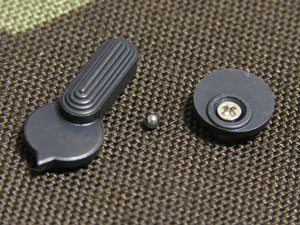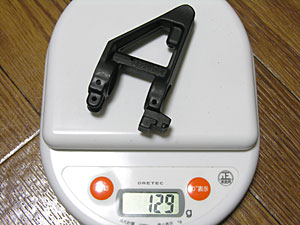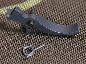 G&G スチールトリガー(\1,512/スーパーガン)![]() これも勢いで購入してしまったが、よくよく形状を見るとエッジが立ちすぎている。指が切れそうだ。トリガー全面は真っ平らで、滑らかにラウンドしたノーマルトリガーと比べるととても感触が悪い。組み込んでいないので作動は未確認。 |