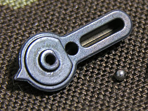 ![]() フレームの穴問題は削って何とかなったが、取り付けを断念せざるを得なかった原因はこの写真。プレート側とコネクトする部分のモールドが薄く、角が丸まっている。このためプレートとネジ止めしてもセレクターの回転と追従しない。見事なスチールブルーの質感だけにこれは惜しい。是非とも改良して欲しい。クリック感を出すためのボールベアリングも外れやすく紛失しやすい。全体的に明らかに設計ミス。 |